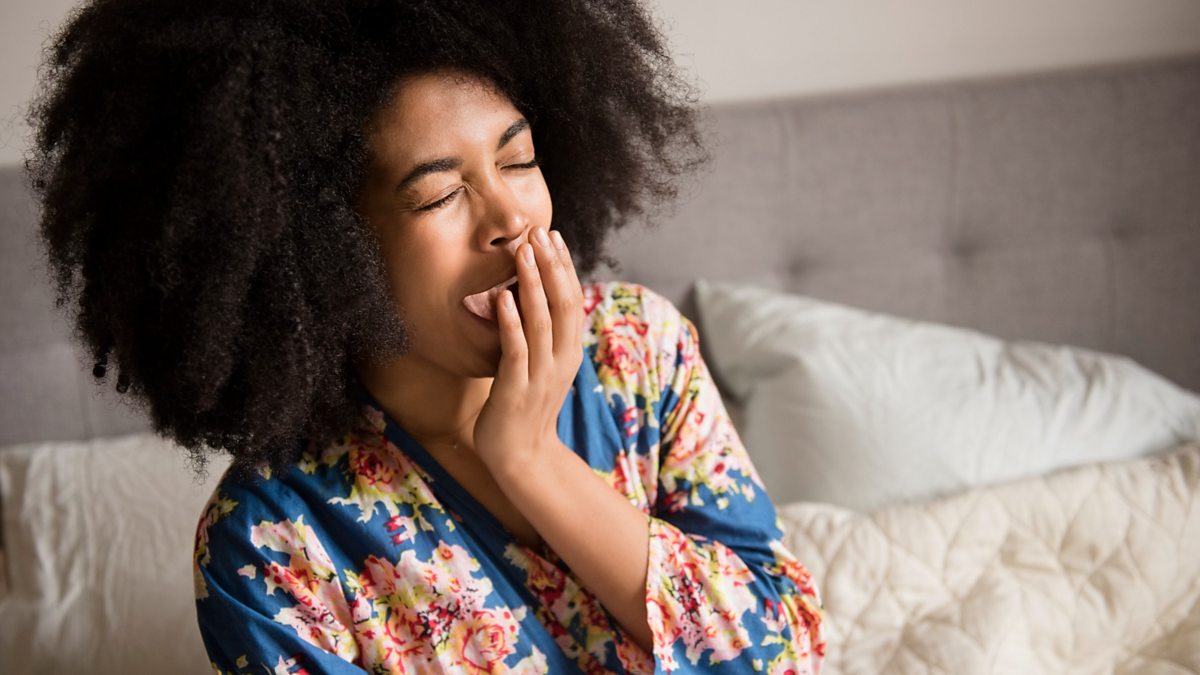 (Woman sitting in bed and yawning. Credit: JGI/Jamie Grill/Getty Images)