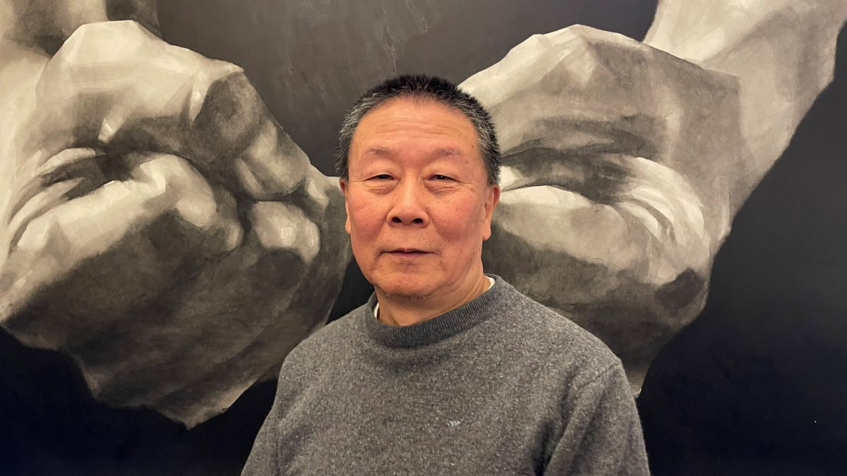 (Photo: Qu Lei Lei in front of his painting Mastering Our Fate. Credit: Paul Waters)