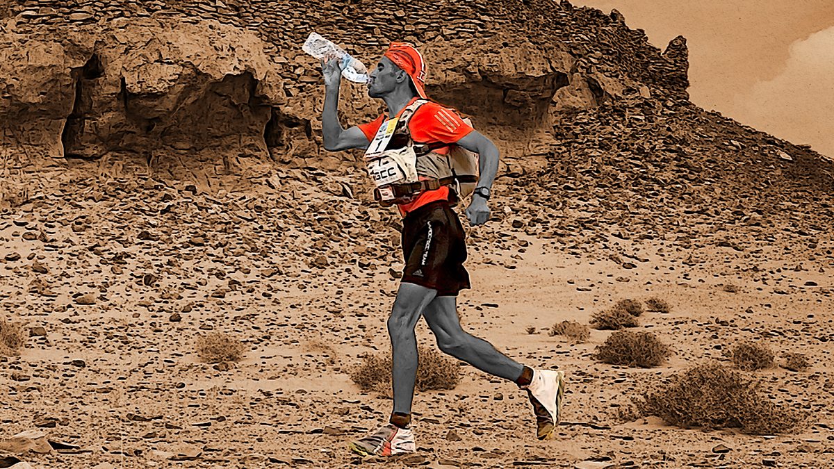 (Picture: A runner in the 2019 Marathon des Sables race. Credit: Erik Sampers/Gamma-Rapho/Getty/ BBC)