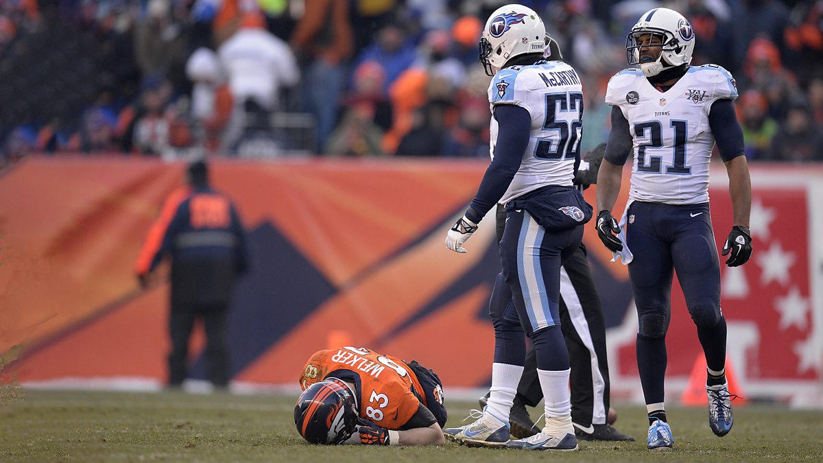 (Photo: Denver Broncos wide receiver Wes Welker (83) lays on the field after getting a concussion in the second quarter. Credit: Getty Images)