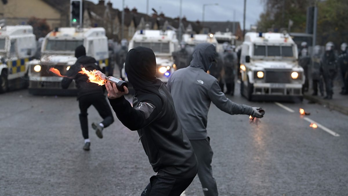 (Nationalists attack police on Springfield Road in Belfast, Northern Ireland, April 08 2021. Photo: Charles McQuillan/Getty Images)