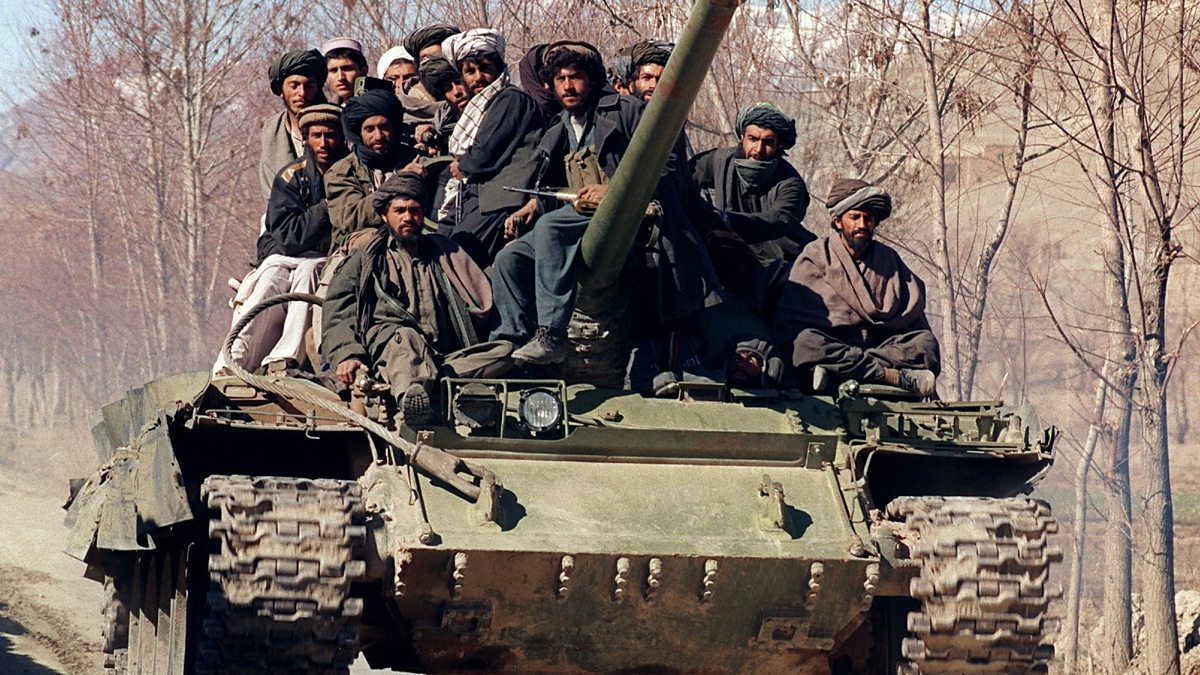 (Taliban militia move towards the front line in Kabul, February 1995. Credit: Saeed Khan /Getty Images)