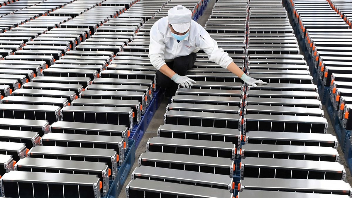 (A worker checks lithium car batteries at the Xinwangda factory in Nanjing,China on March 12, 2021. AFP via Getty Images)