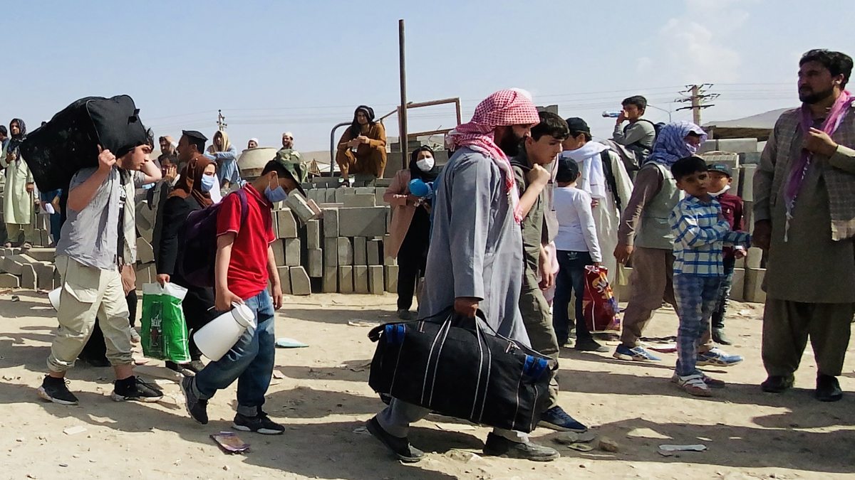 (Image: Afghans gather outside the Hamid Karzai International Airport in Kabul to flee the country, Image credit: European Pressphoto Agency)