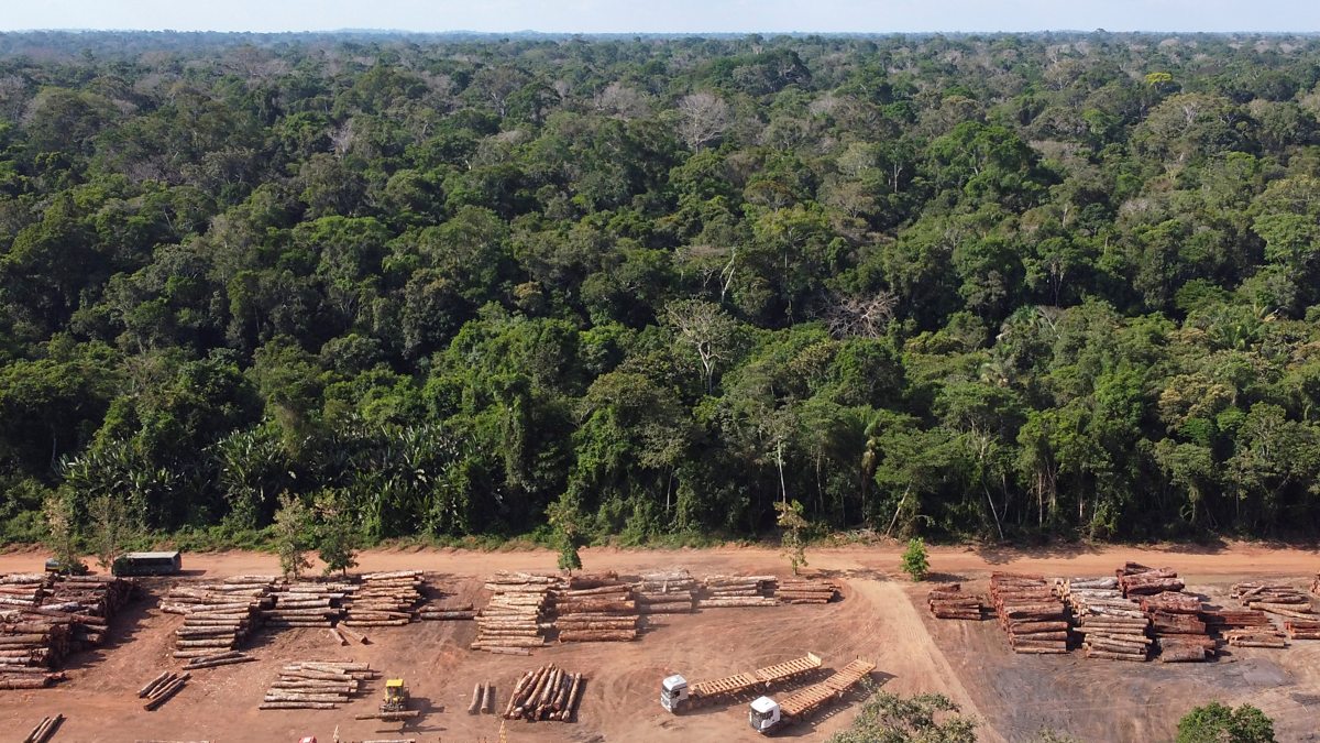 (Image: Piles of illegal wood gathered next to the rainforest. Credit: Reuters)