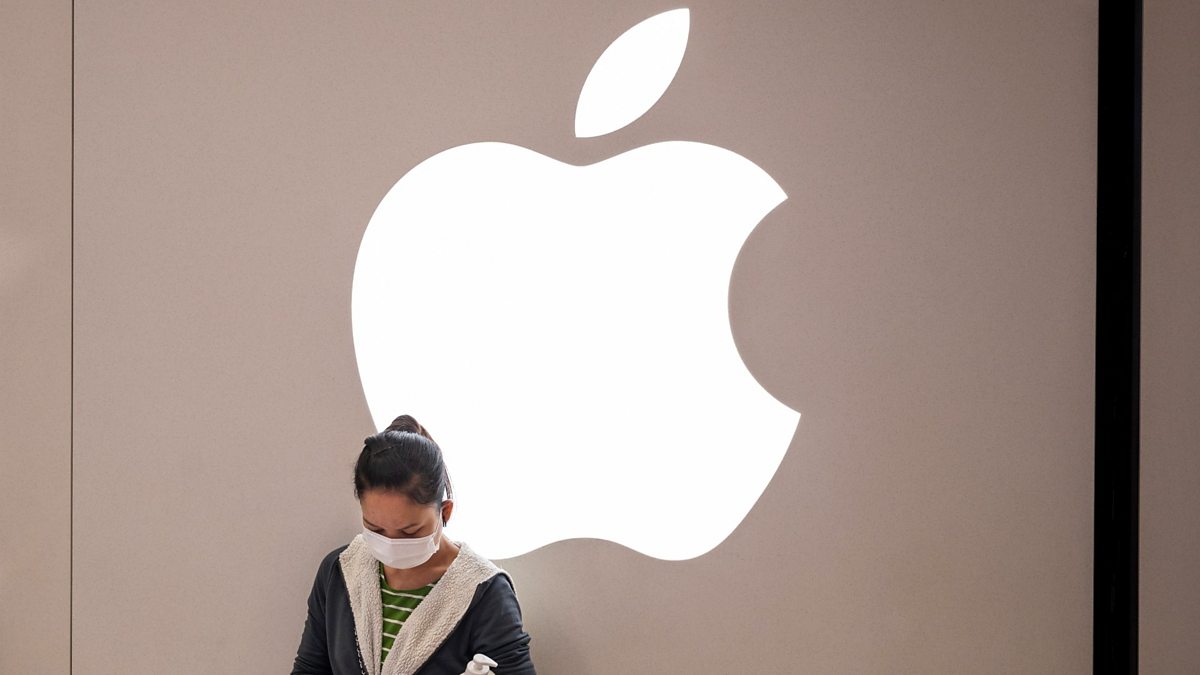 (Image: Apple shopt front with logo and female shopper; Credit: Getty Images)