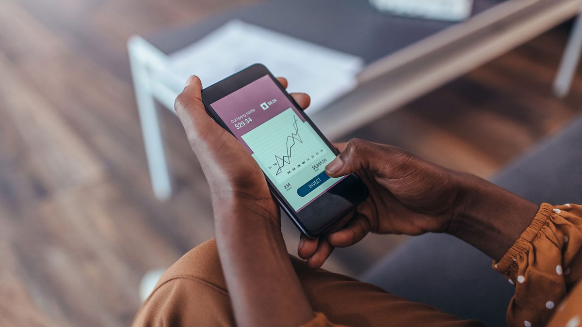(Photo: Woman trading via a mobile app. Credit: Getty Images)