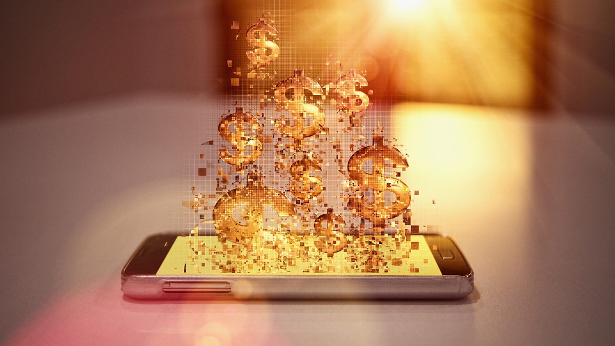 Image: Stock image of pixelated dollar signs floating over cell phone (Credit: Donald Iain Smith/Getty Images)