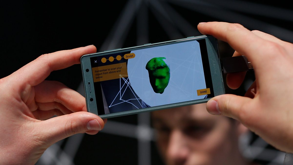 (Photo: A man uses Sony's 3D Creator scanning to create a three-dimensional image