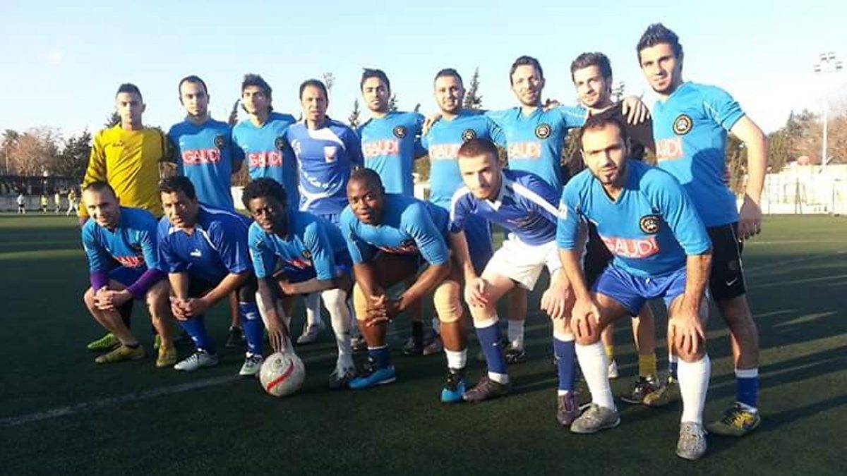 PHOTO: Olaniyi Gideon, with the ball, in a team phot taken in Syria (personal collection)