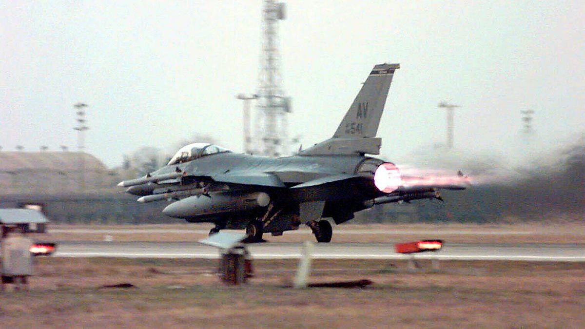PHOTO: An F-16 jet at Nato's Aviano base in Italy during the air strikes on Kosovo (Getty Images)