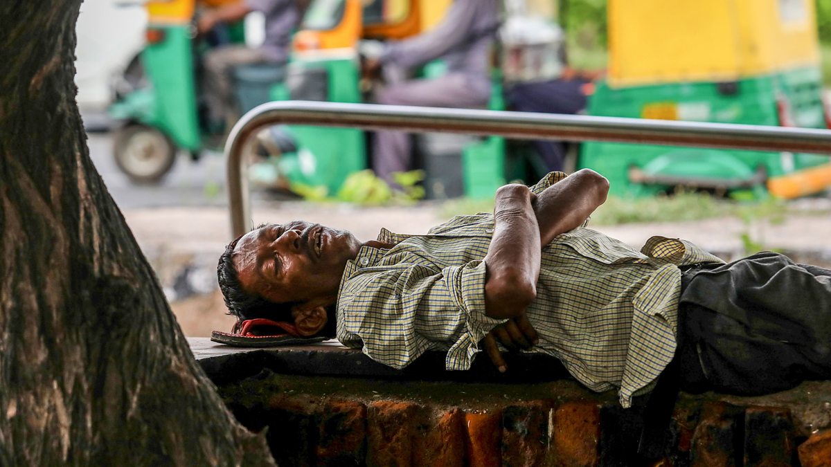 Photo: A worker in Delhi, India, takes rest during a sweltering summer's day Credit: Getty Images