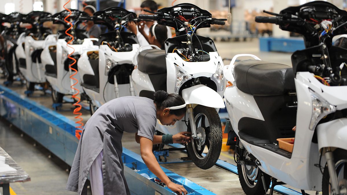 Photo: A worker on an Electric Bike assembly line Credit: Getty Images