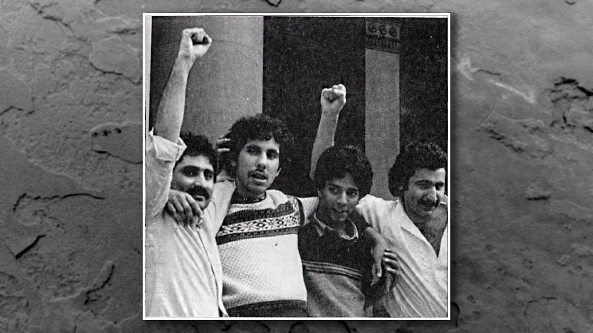 (Photo: Tariq Mehmood [far left] in 1981 along with other members of the Bradford 12. Credit: Courtesy of Ruth Bundey)