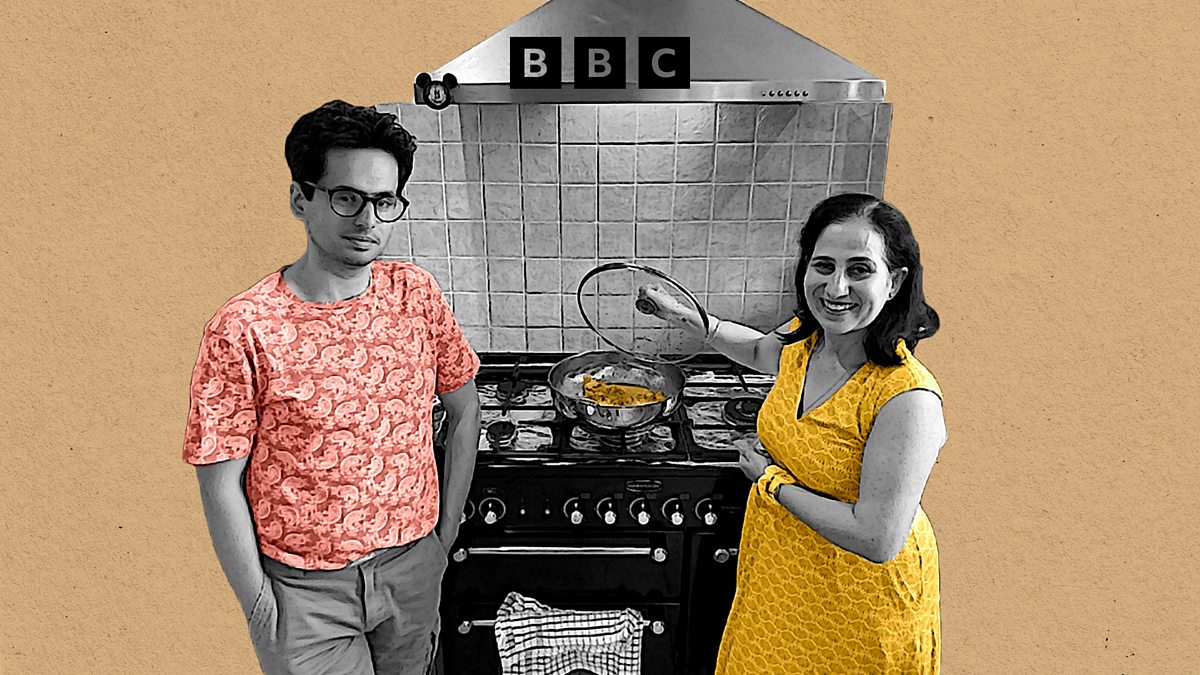 (Image: Rahul Raina cooking chicken yakhni, a Kashmiri dish, with his mother Sunanda Dhar. Credit: BBC)