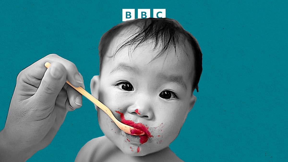 (Image: a baby being spoon fed, with food around its mouth. Credit: Getty Images/ BBC)