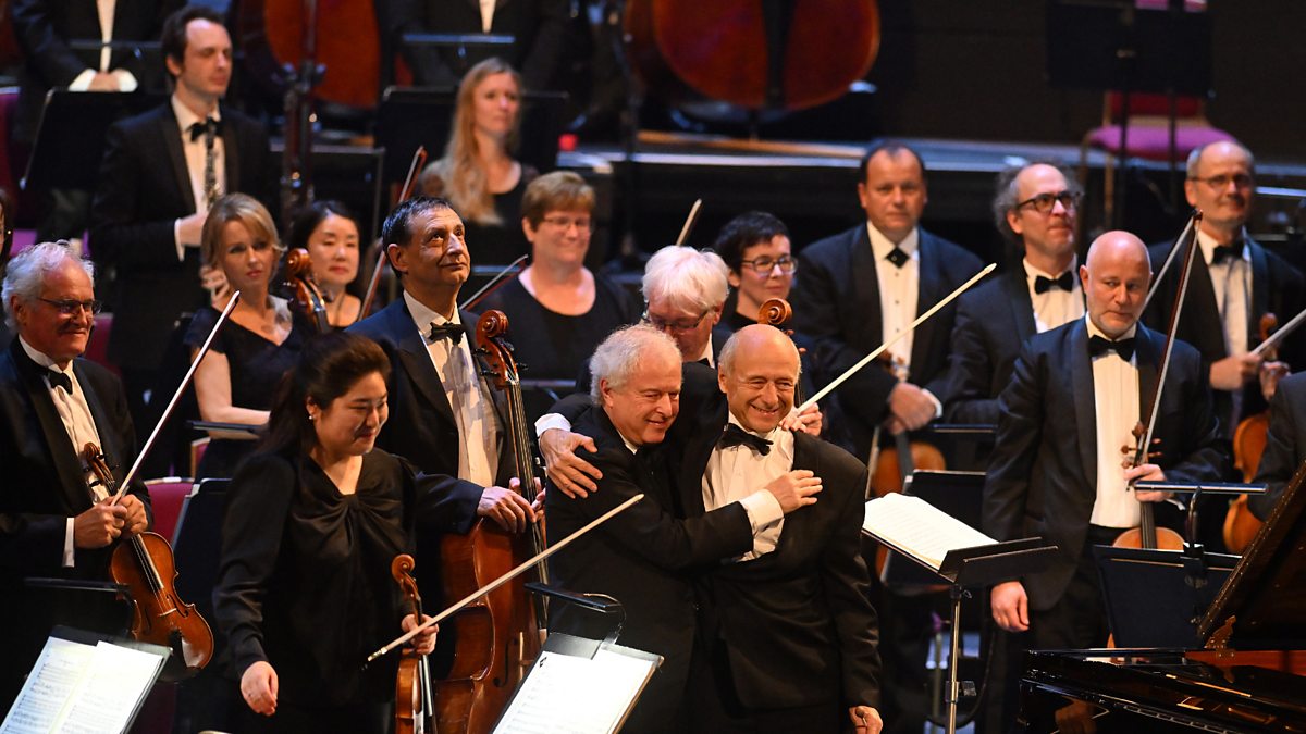 (Photo: Andras Schiff, Ivan Fischer and members of the Budapest Festival Orchestra at the 2023 BBC Proms. Credit: Mark Allan/BBC)