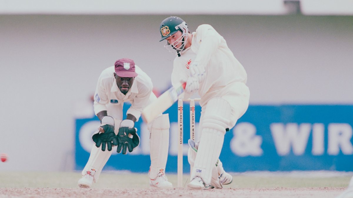 Photo: Australian cricketer Steve Waugh during the 4th Test Match between the West Indies and Australia in Jamaica, May 1995. (Photo by Clive Mason/Getty Images)