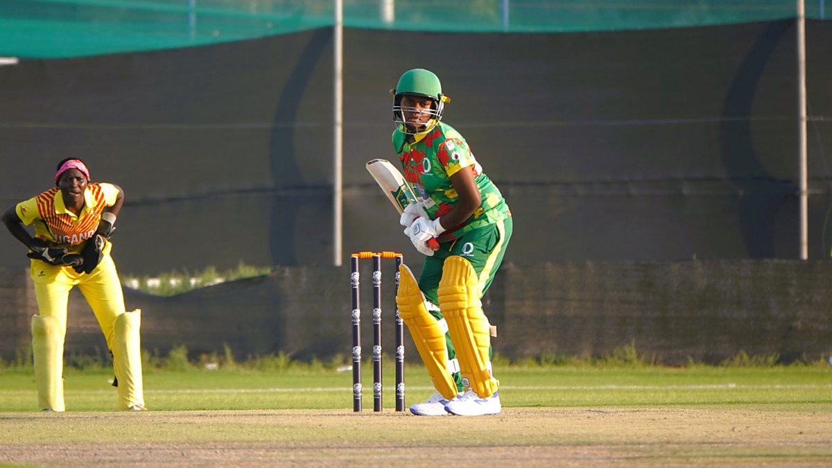 Photo: Vanuatu women's team bat against Uganda in a friendly match in Abu Dhabi. (Credit: Vanuatu Cricket Association)