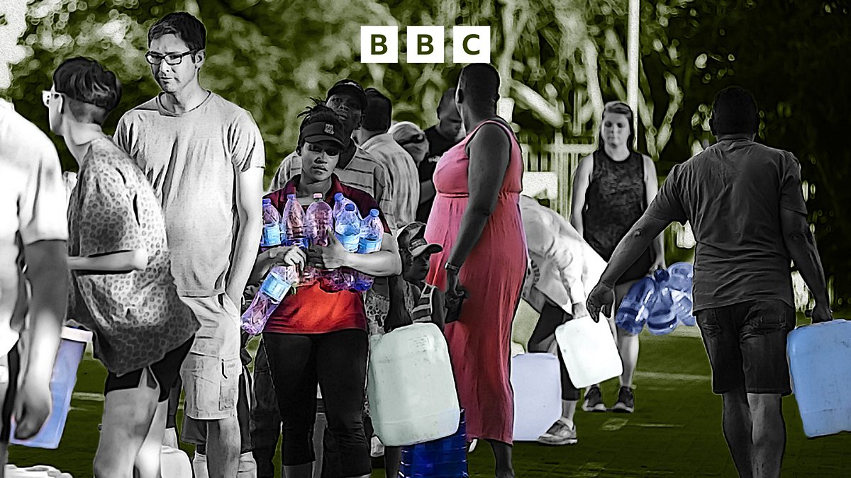 (Image: people queuing for water in Cape Town, South Africa in 2018. Credit: Bloomberg/Getty Images/BBC)