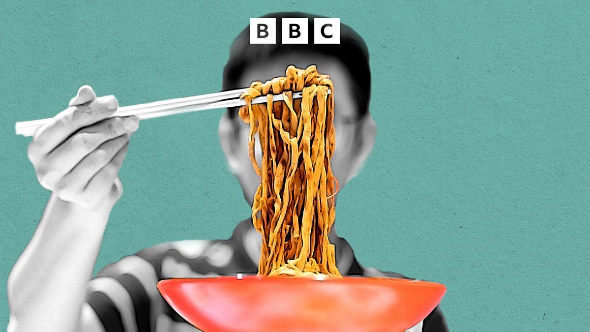 (Image: noodles dangling from chopsticks above a bowl. Credit: Getty Images/ BBC)