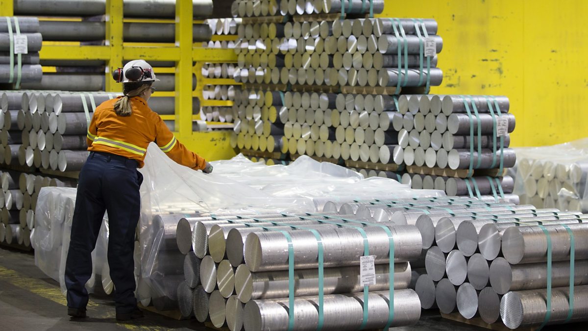 (Picture: An employee covers a stack of aluminum billets with plastic. Credit: Getty Images)