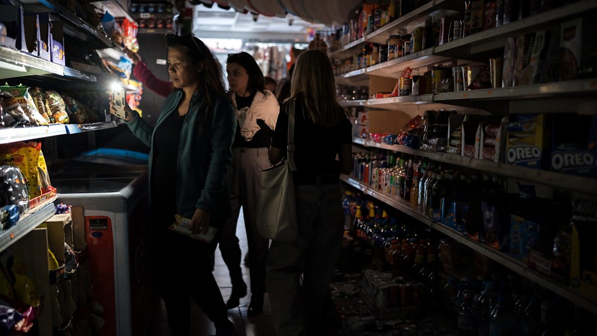 (Picture: People shop for groceries using their phone as a flashlight during the widespread power outage that struck Spain and Portugal in April 2025. Credit: Getty Images)