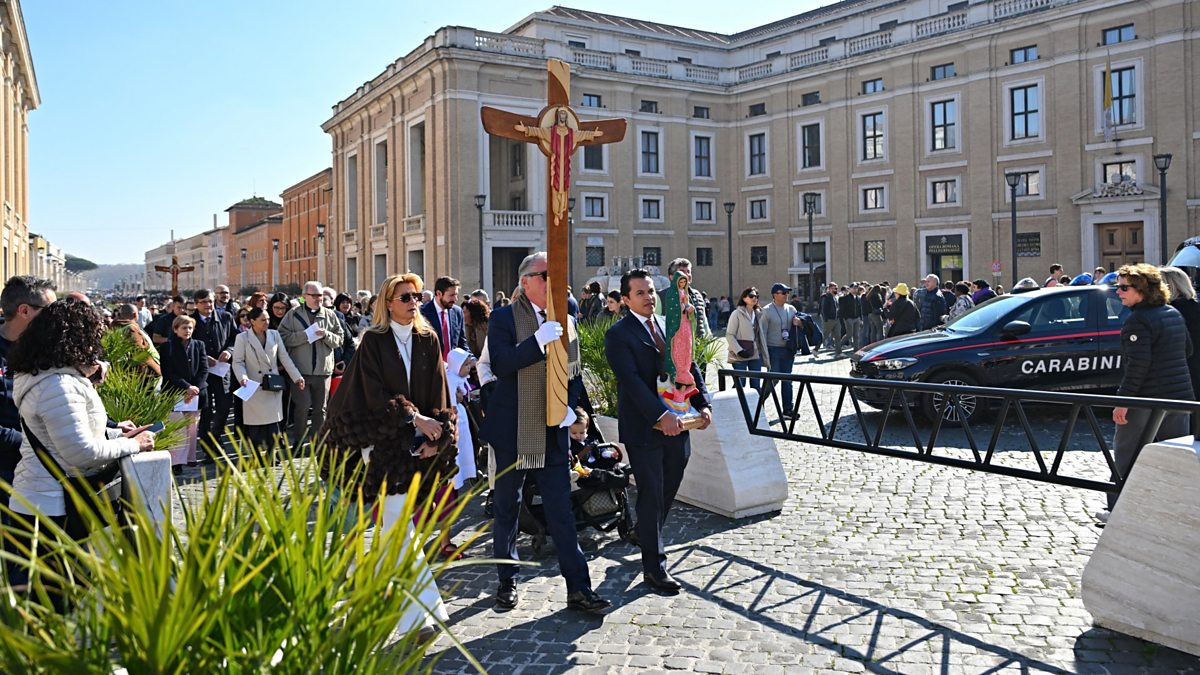 (Image: Faithful carry a wooden cross on Via della Conciliazione in Rome during the pilgrimage route to the Holy Door of St. Peter's basilica in the Vatican, as part of the Catholic Jubilee Year, on 22/02/25. Credit: Getty Images)