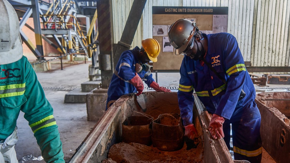 (Image: Workers prepare casting units at the Mufulira refinery, operated by Mopani Copper Mines Plc, in Mufulira, Zambia in May 2022. Credit: Getty Images)