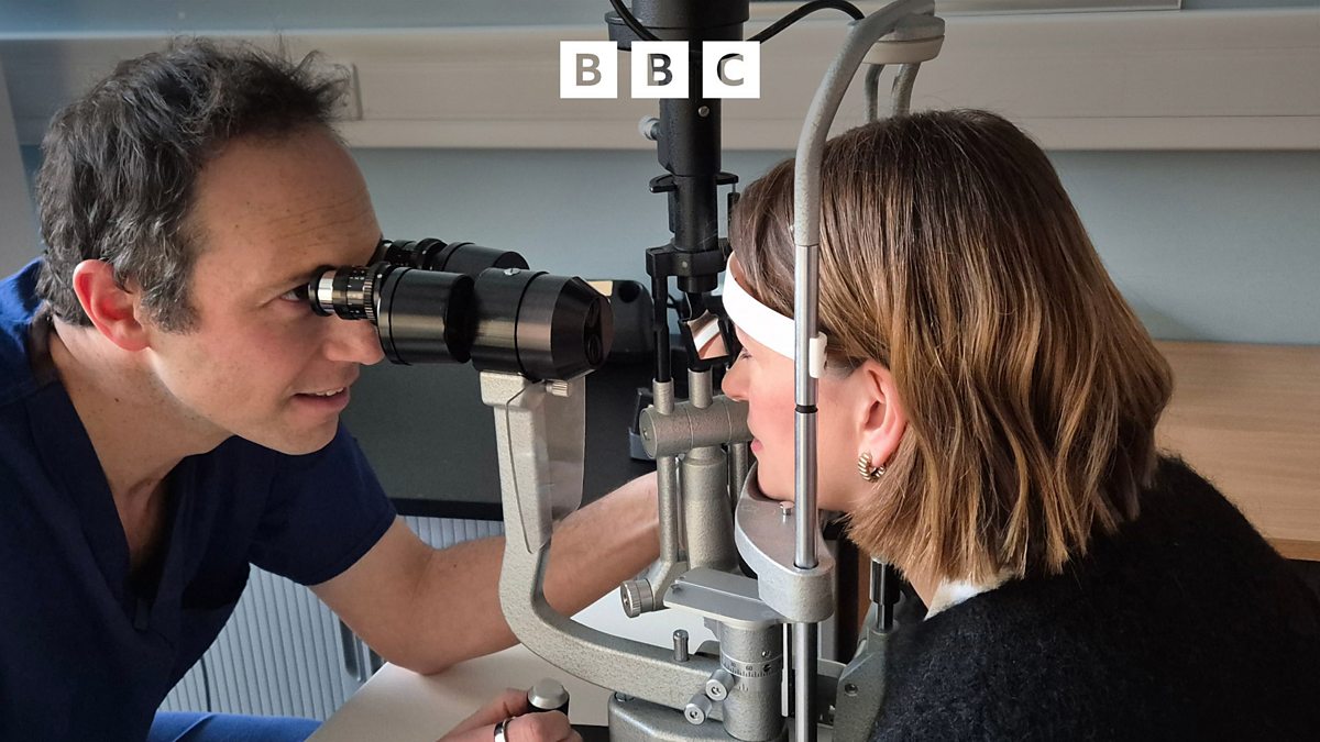 (Photo: Nicki Guy having her eyes examined. Credit: PA)