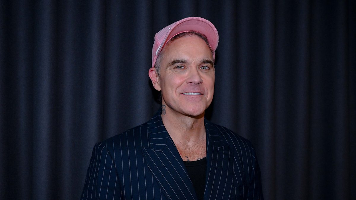 (Photo: Robbie Williams joins Scott Mills on the Radio 2 Breakfast Show, 10 November 2025. Credit: Sarah Jeynes)