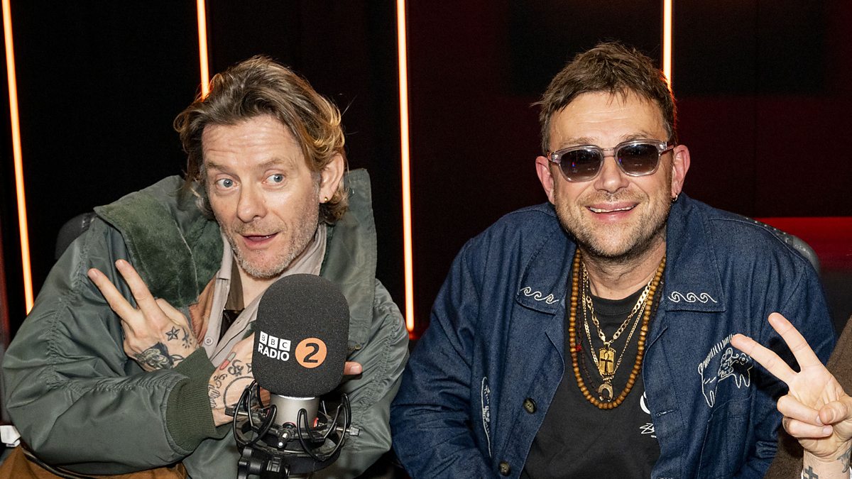 (Photo: Jamie Hewlett and Damon Albarn photographed for BBC Radio 2 with Jo Whiley, 5 November, 2025. Credit: Sarah Louise Bennett)