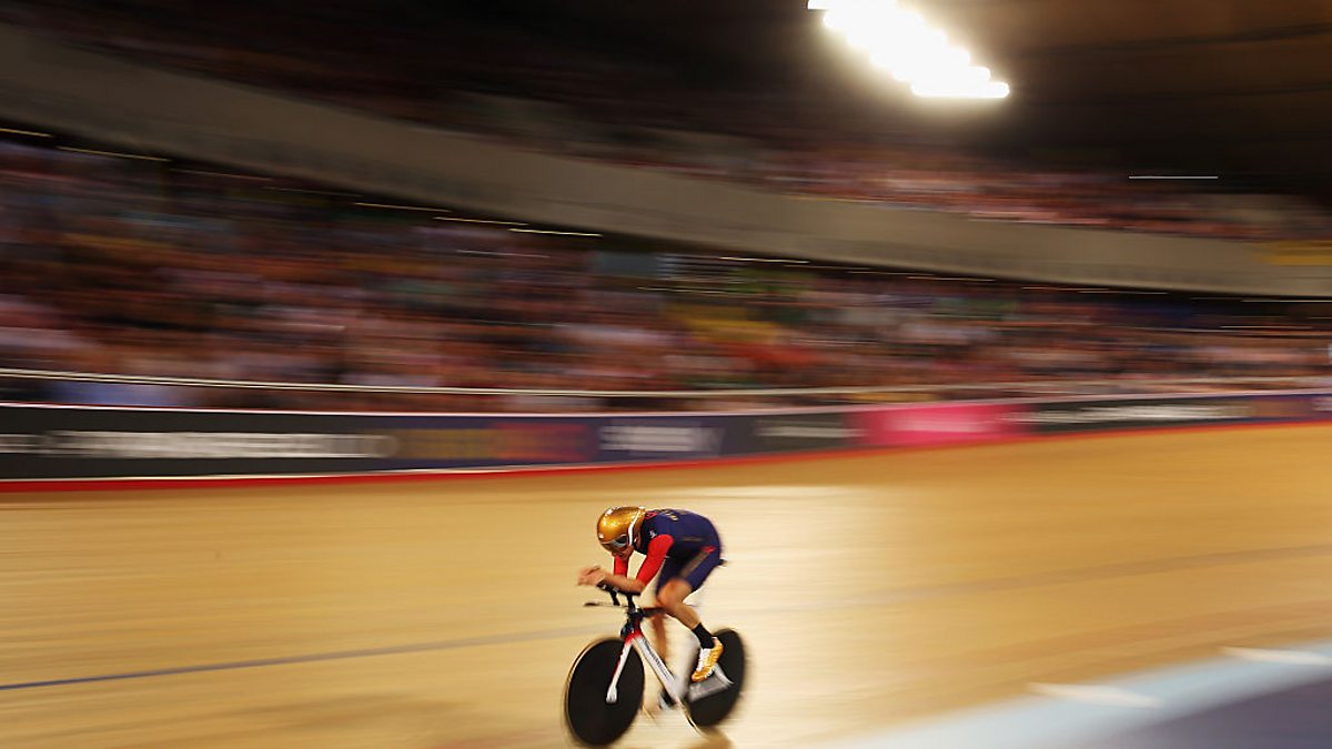 (PHOTO: Sir Bradley Wiggins in action on his way to setting a new UCI One Hour Record at Lee Valley Velopark Velodrome June 7, 2015 in London, England. CREDIT: Bryn Lennon/Getty Images)
