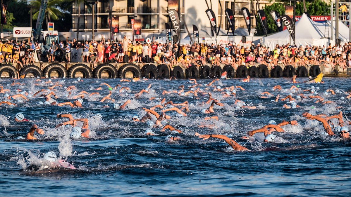 (Photo: Triathletes compete in the 3.8km swim during the Ironman World Championships on 10 October, 2015, Kailua Kona, Hawaii. Credit: Jason Rappaport/Getty Images)