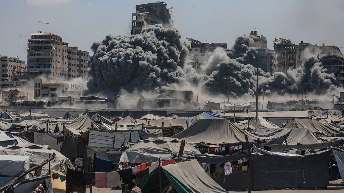 (Photo: Smoke rises at the Harmony Tower following an Israeli airstrike in the west of Gaza City, Gaza Strip, 10 September 2025. Credit: Mohamed Saber/EPA/Shutterstock)