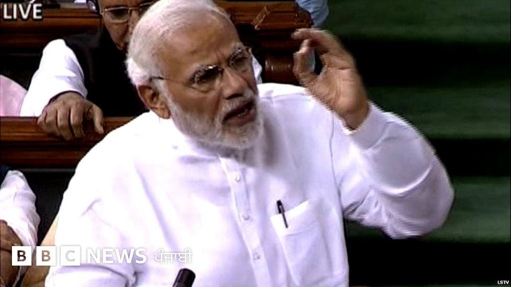 - ਬੇ-ਭਰੋਸਗੀ ਮਤਾ: 'ਮੋਦੀ ਨੇ ਪੰਜ ਸੈਕਿੰਡ 'ਚ ਪੱਗ ਸਿਰ ਤੋਂ ਲਾਹ ਸੁੱਟੀ'
