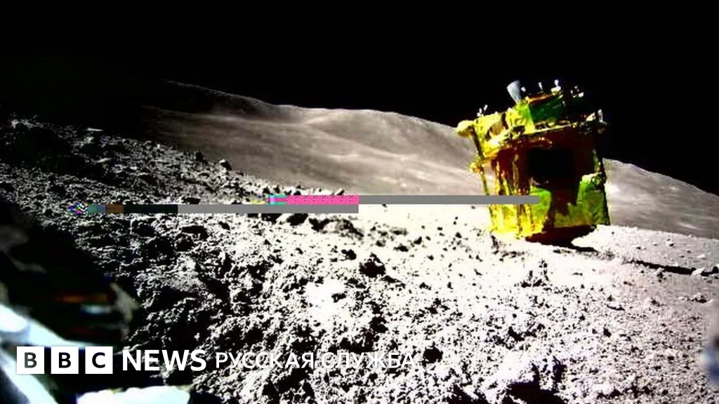 Подпись к фото, Первое изображение лунного модуля SLIM, на котором видно его неправильное положение при приземлении