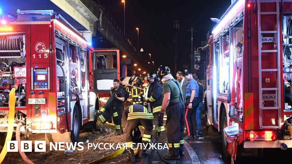 По сообщениям итальянских СМИ, после столкновения автобус загорелся. При падении он задел провода контактной сети над железнодорожными путями.
