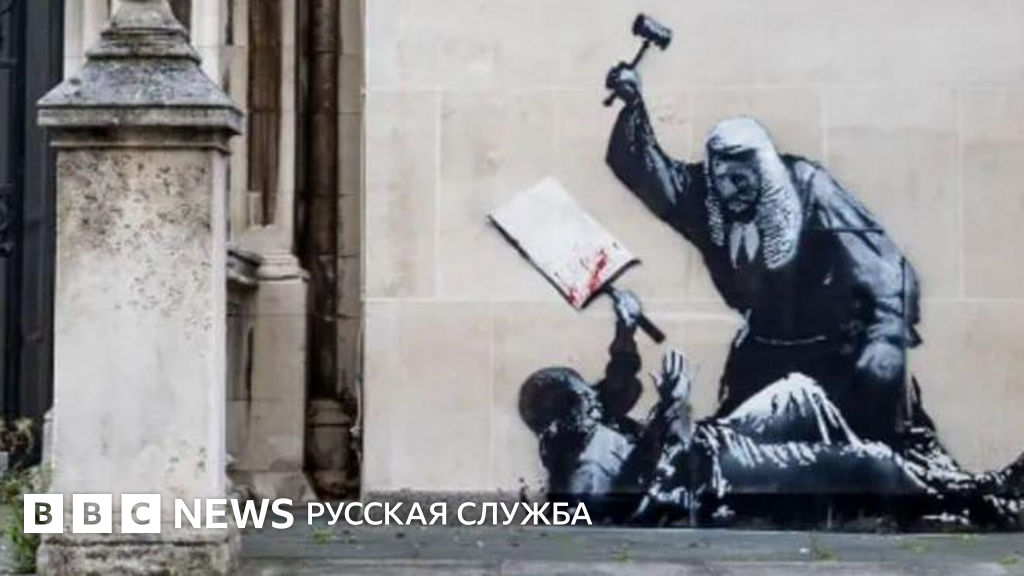 Новая работа Бэнкси — на этот раз на стене Королевского суда в Лондоне: судья избивает протестующего