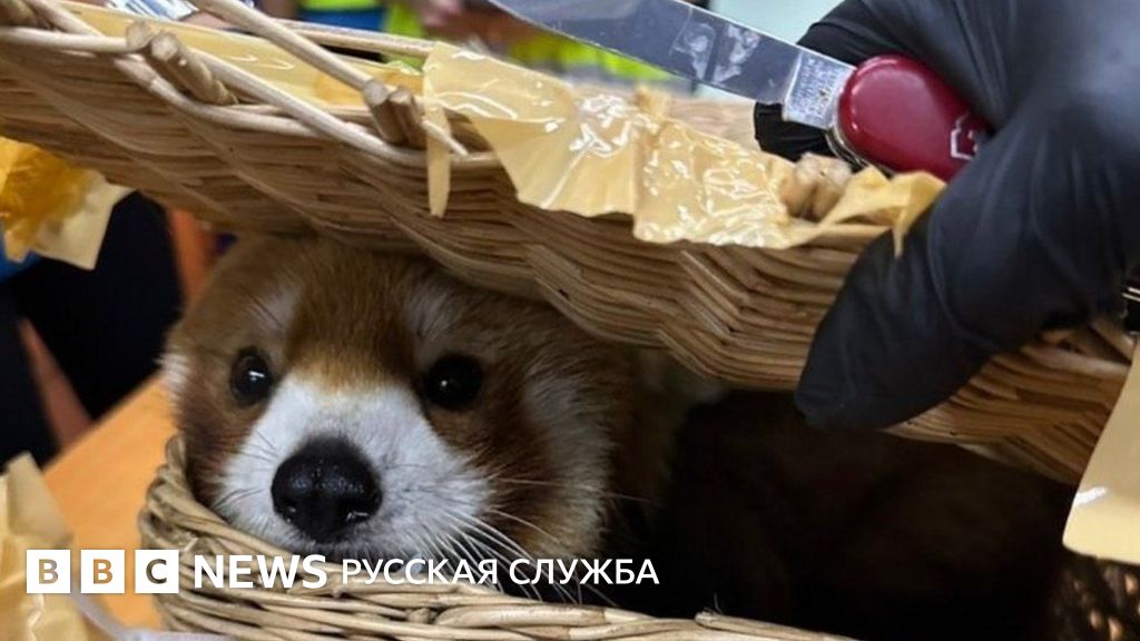 Таиландские таможенники опубликовали фотографию красной панды в соломенной корзине, а также попугая, помещенного в пластиковый контейнер.
