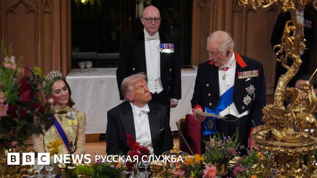 Первый полный день государственного визита президента США Дональда Трампа в Великобританию завершился пышным банкетом в его честь в Виндзорском замке, устроенным для него королем Карлом III.