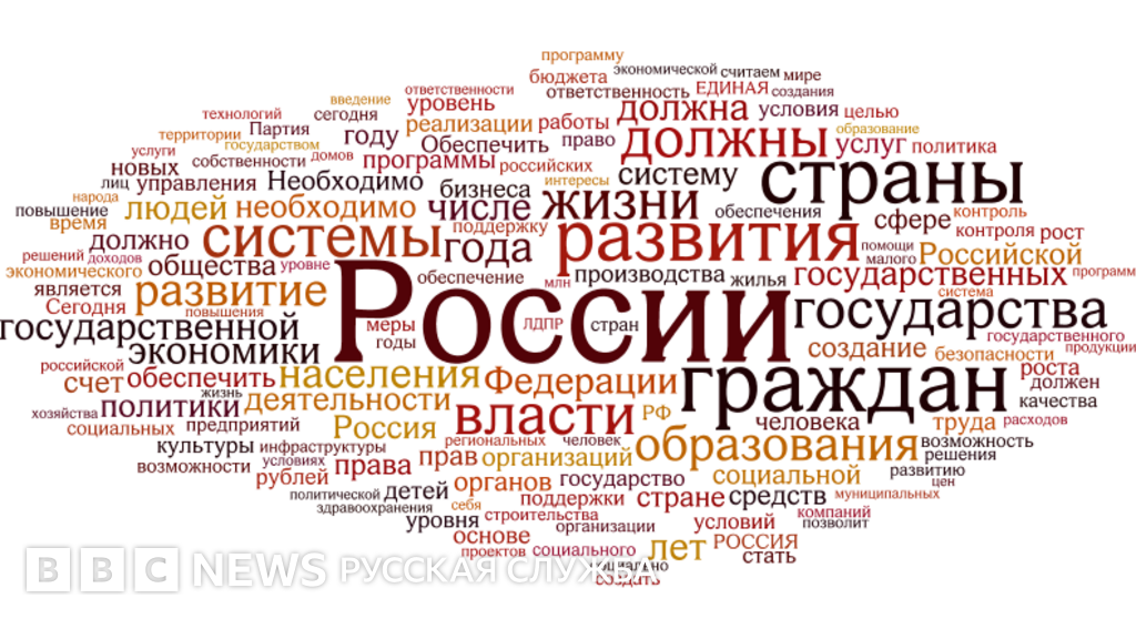 3 августа заканчивается период регистрации партий и кандидатов для участия в выборах в Госдуму Российской Федерации. Каждая партия обязана опубликовать свою предвыборную программу. По закону о выборах, политическим структурам дается время до 30 августа, чтобы принять и обнародовать этот важный документ, но большинство из них это уже сделали. Русская служба Би-би-си решила посмотреть, какие слова чаще всего употребляются в предвыборных программах, и вот что выяснилось.
