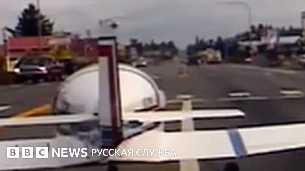 Небольшой самолет приземлился на оживленной улице в штате Вашингтон. К нему сразу подъехала полиция.