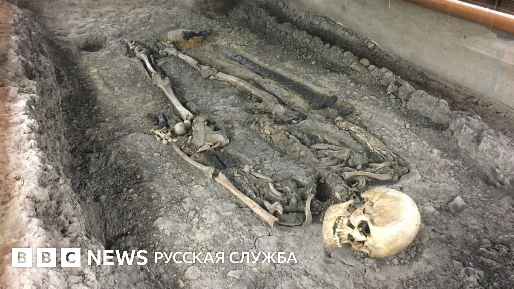 Тело неизвестного воина, умершего в X веке, было захоронено вместе с железным мечом больше метра длиной, двумя ножами, топором, деревянным ведром и другими предметами.