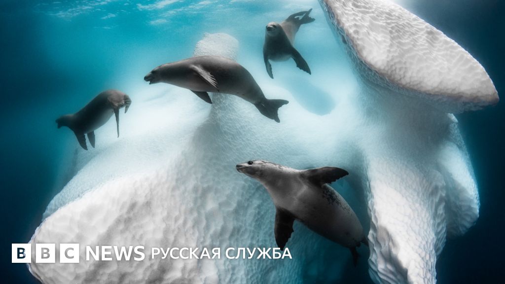 Подпись к фото, Главный приз конкурса. Сделанный в Антарктике снимок айсберга и плавающих вокруг него тюленей фотограф Грег Лекур назвал "Замороженный плавучий дом"