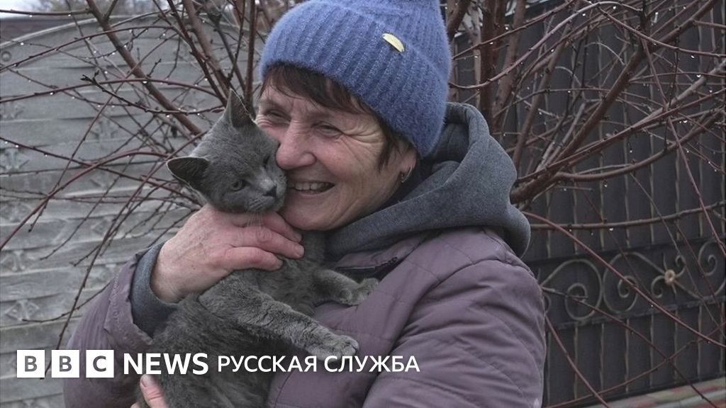 Подкармливает домашних кошек и Ольга, еще одна жительница Чернобаевки, которую мы встретили у дома ее дочери. К сумке у нее привязана сине-желтая лента. Стайка серых ухоженных кошек, увидев кормилицу, бежит здороваться.