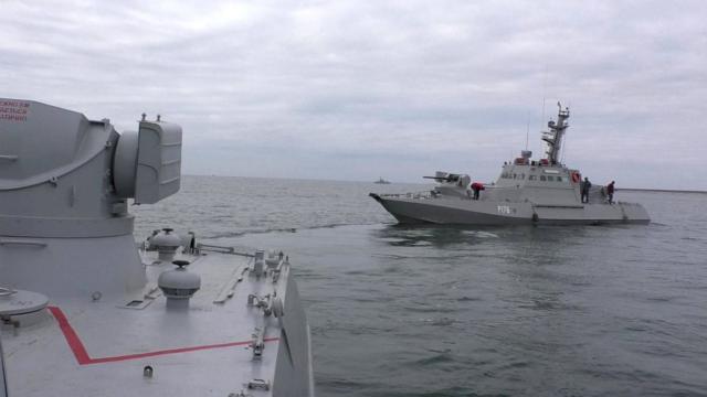 - Утром в воскресенье корабли ВМС Украины были приведены в боевую готовность: расчехлены артиллерийские установки, стволы артиллерийских установок подняты на угол 45 градусов и направлены в сторону российских кораблей и катеров в нарушение Конвенции ООН по морскому праву