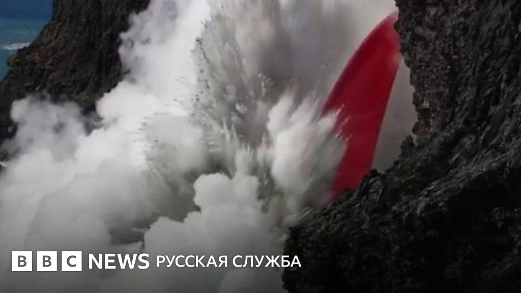 Геологическая служба США опубликовала видео извергающегося вулкана Килауэа, лава которого стекает в Тихий океан.