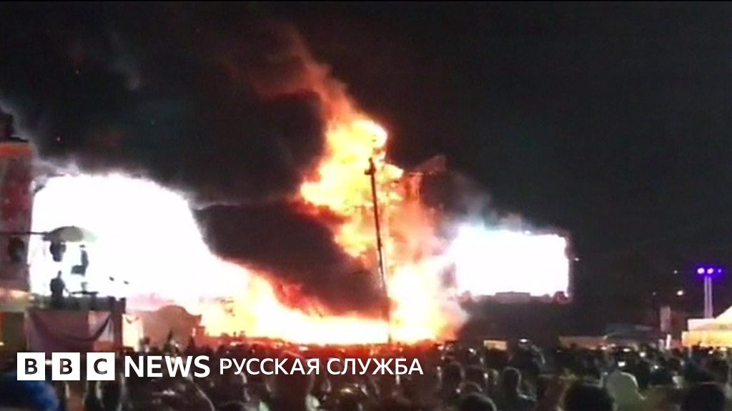 На видео и фотографиях, выложенных в соцсетях, видно, как часть сцены за короткое время оказалась охвачена мощным пламенем.