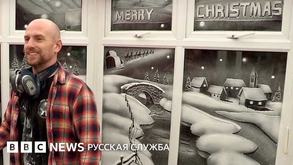 "Снеговик" рисует сногсшибательные рождественские картины на окнах